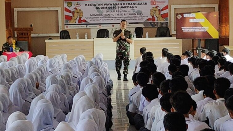 SUMEDANG | METRONASIONALNEWS.com – Dalam rangka memeriahkan HUT ke-80 Republik Indonesia, Kodim 0610/Sumedang menggelar kegiatan Wawasan Kebangsaan di SMKN Situraja, Desa Sukatali, Kecamatan Situraja, Senin (11/8/2025).