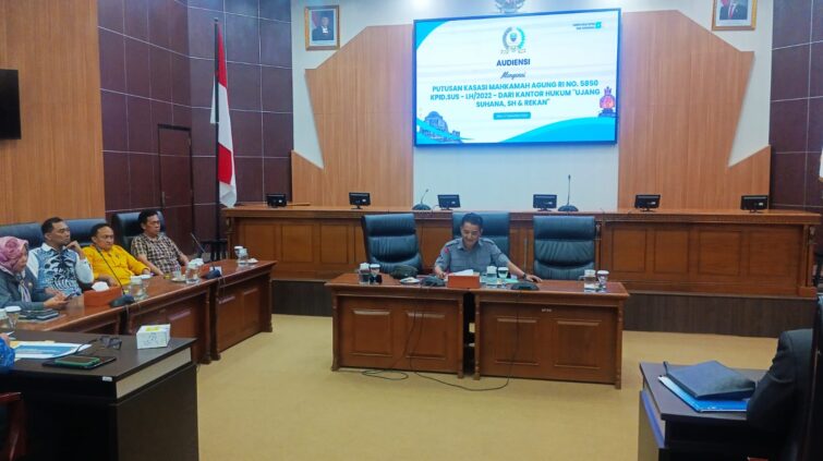 Sumedang | Metronasionalnews.com – Komisi IV DPRD kabupaten Sumedang menerima Audensi dari kantor hukum Ujang Suhana SH tentang putusan Mahkamah Agung Republik Indonesia nomor 5850 KPID. SUS -LH/2022 pada Rabu, 17 September 2025 bertempat di Ruang Rapat paripurna DPRD Kabupaten Sumedang hadir dalam acara tersebut bagian hukum, Dinas PUTR, Dinas lingkungan Hidup, Ketua Korwil APRESi serta divisi hukum DPD APRESi ( Asosiasi Pengembangan Perumahan dab Permukiman Indonesia )