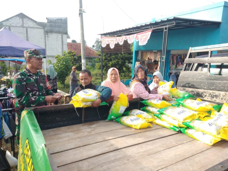Beras Murah Ludes Diserbu Warga, Koramil 1004 Tanjungsari Gelar Gerakan Pangan Murah di Pasar Kaget