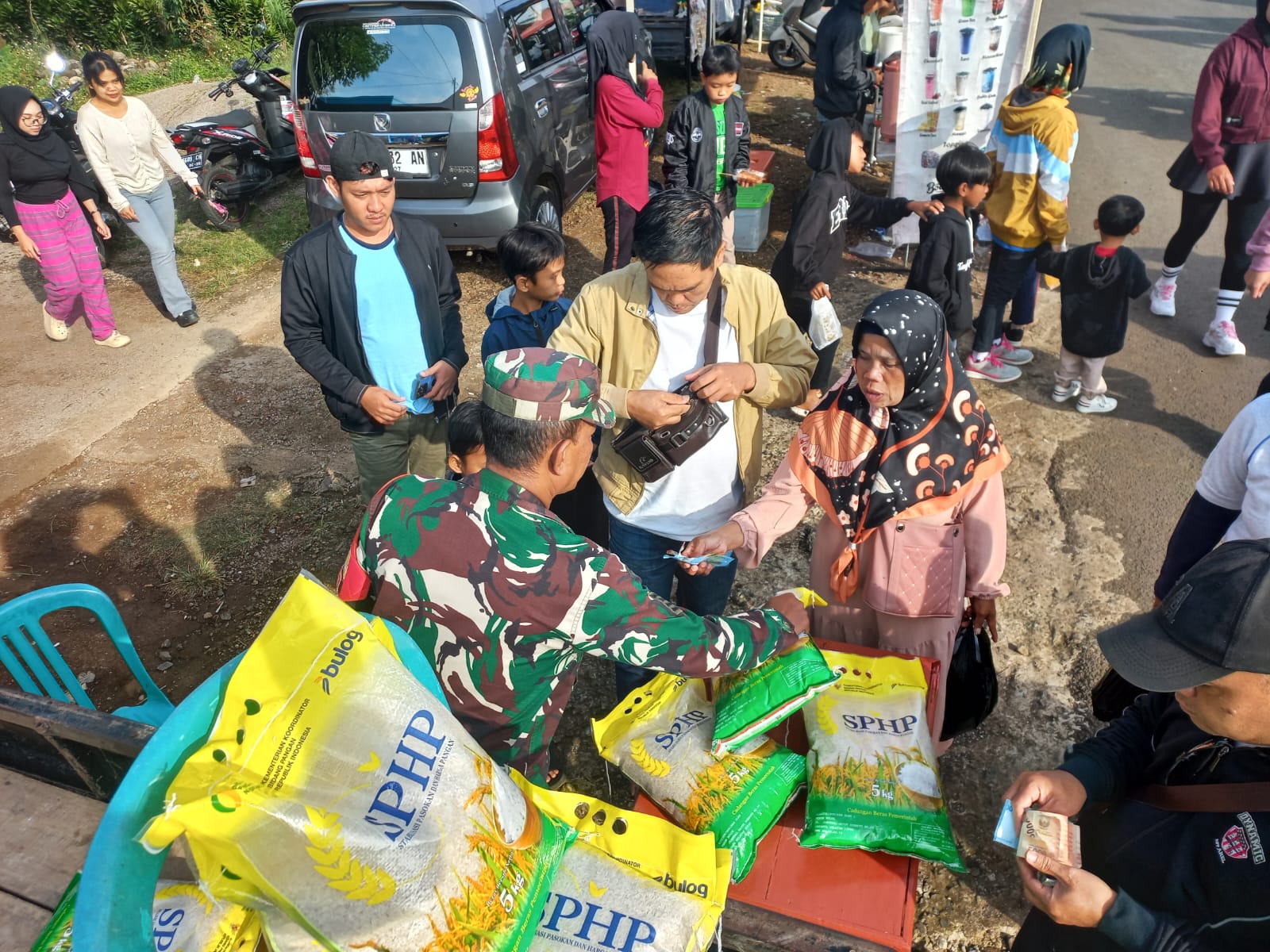 Beras Murah Ludes Diserbu Warga, Koramil 1004 Tanjungsari Gelar Gerakan Pangan Murah di Pasar Kaget