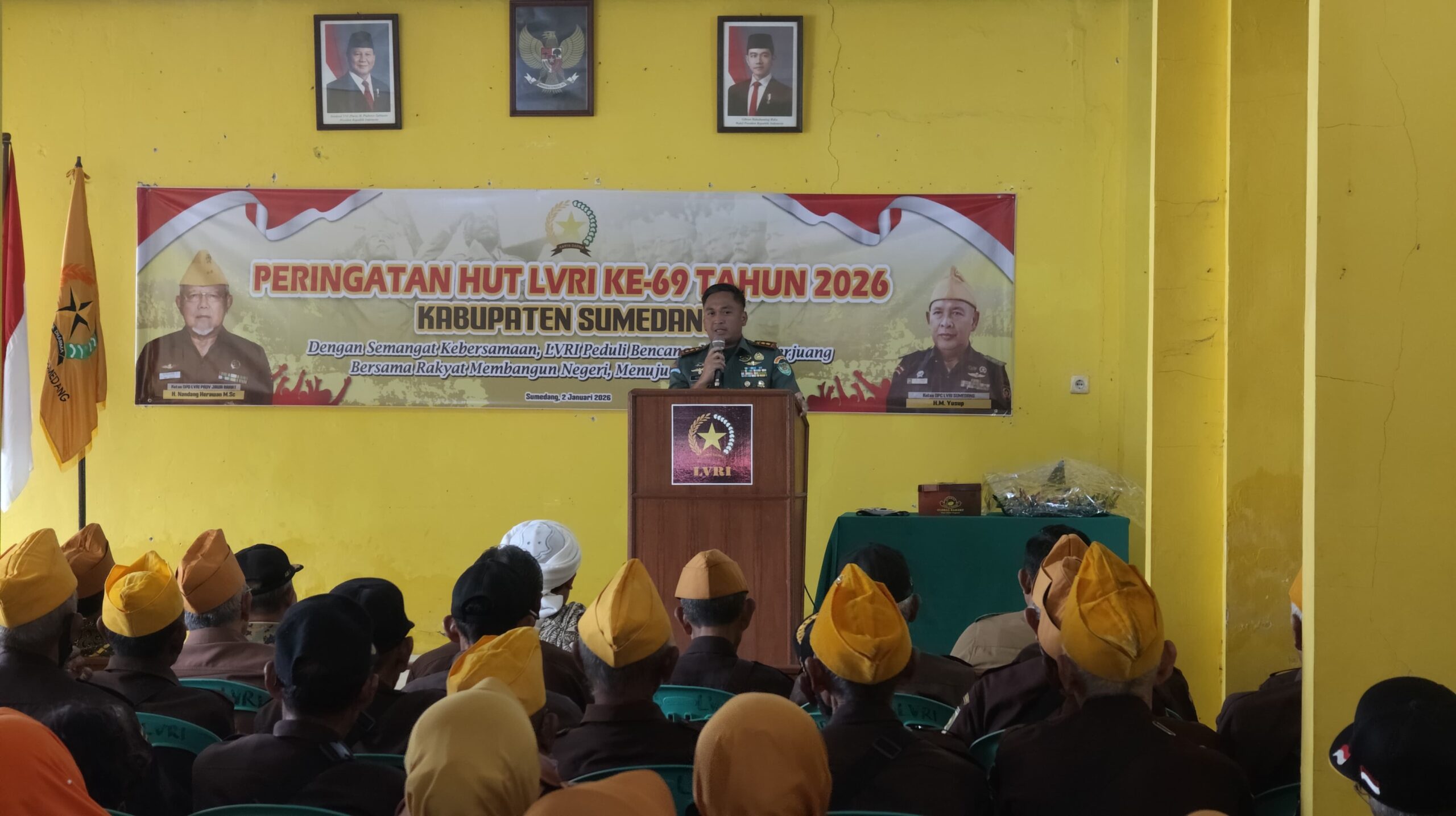 Sumedang | Metronasionalnews.com – Komandan Kodim 0610/Sumedang, Letkol Arh Kusuma Ardianto, S.I.P., M.Han, menghadiri kegiatan Peringatan Hari Ulang Tahun Legiun Veteran Republik Indonesia (LVRI) ke-69, yang dilaksanakan pada Senin, 12 Januari 2026, mulai pukul 09.45 WIB hingga selesai, bertempat di Aula Veteran Jalan Soeryatmaja, Kelurahan Kotakulon, Kecamatan Sumedang Selatan.