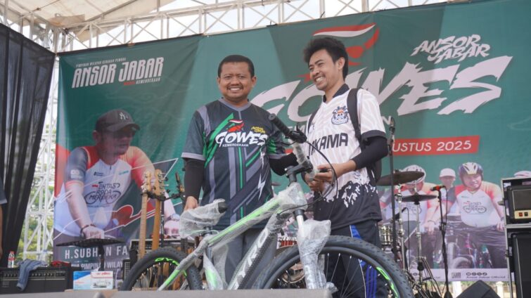 SUMEDANG | METRONASIONALNEWS.com – Gowes Kemerdekaan Anshor Jawa Barat di Sumedang diikuti ribuan pesepeda, Minggu (24/8/2025). Star dan finis dipusatkan di Pusat Pemerintahan Sumedang (PPS) dengan rute PPS – Bojong – Sindang Taman – Pamarisen- Mekarjaya Terowongan Tol – Padasuka – Nalegong – kembali ke PPS menghadirkan nuansa berbeda.