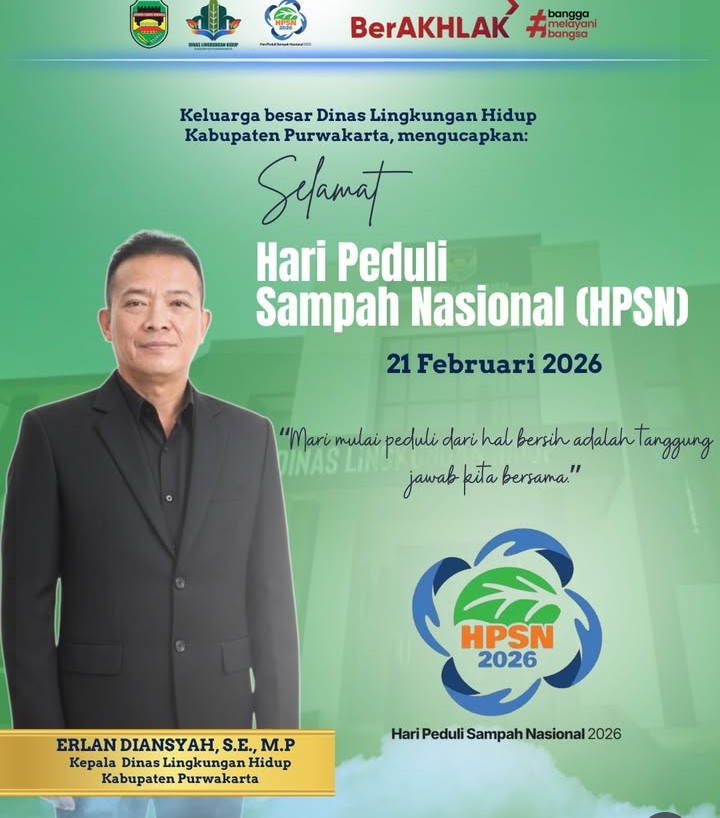 PURWAKARTA – Dalam rangka memperingati Hari Peduli Sampah Nasional (HPSN) 2026, Dinas Lingkungan Hidup (DLH) Kabupaten Purwakarta menyerukan perubahan perilaku kolektif dalam pengelolaan sampah. Melalui pesan yang disampaikan oleh Kepala Dinas Lingkungan Hidup Kabupaten Purwakarta, Erlan Diansyah, S.E., M.P., pihak dinas menekankan pentingnya menjadikan kepedulian terhadap kebersihan lingkungan sebagai bagian dari keseharian, bukan sekadar agenda peringatan tahunan.