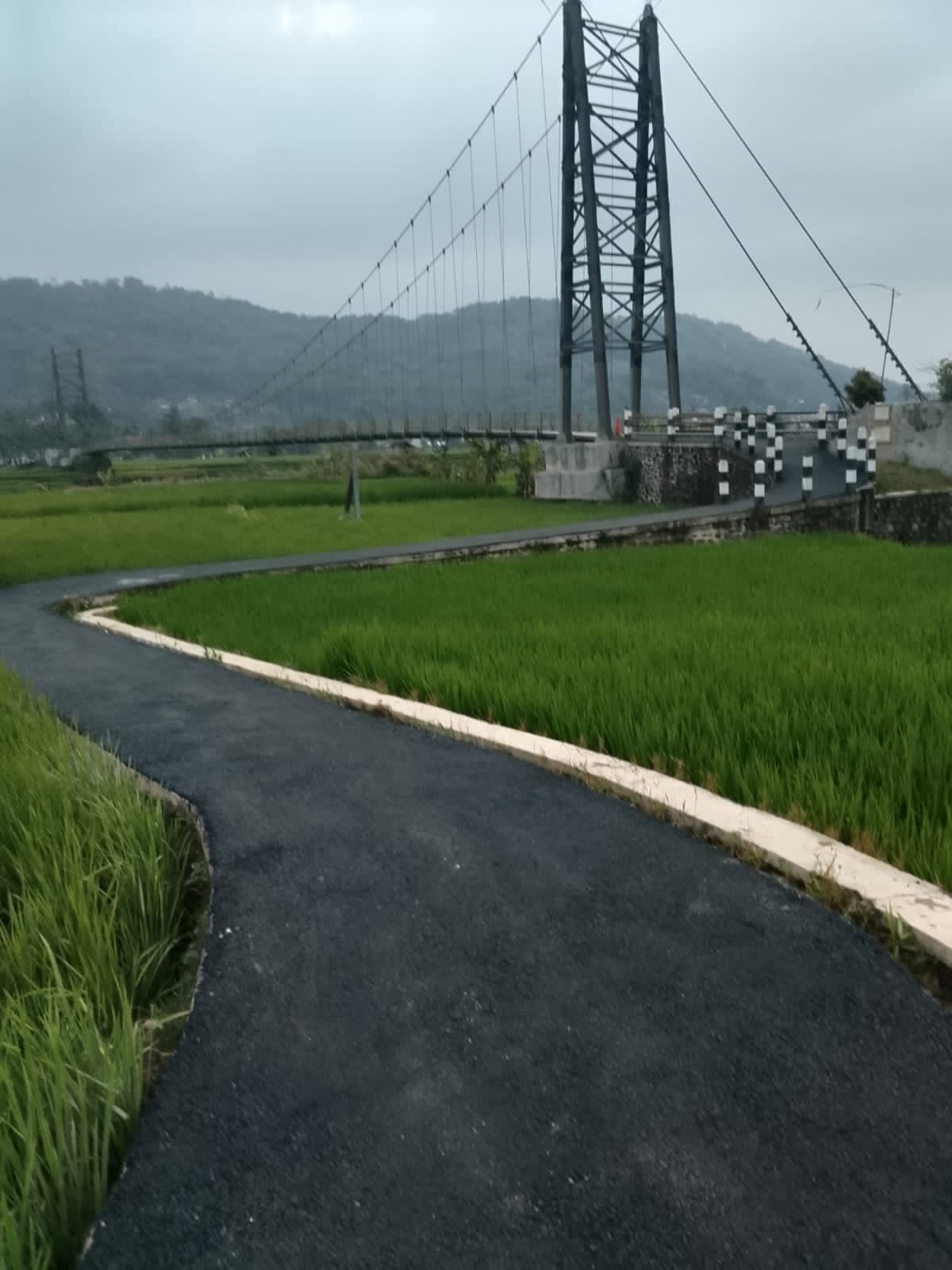 Tak jauh dari lokasi pengerjaan jalan, suara anak-anak berlarian menyambut senja. Beberapa warga tampak mengabadikan momen di jembatan gantung yang kini mulai dikenal luas. Wisatawan pun mulai berdatangan, sekadar berjoging atau berswafoto. Suasana itu menjadi saksi bahwa akses yang memadai mampu menghadirkan geliat baru di sebuah desa yang selama ini tumbuh dalam diam.