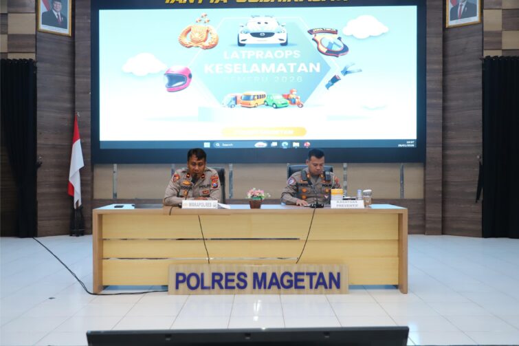 Magetan – Menjelang meningkatnya mobilitas masyarakat pada bulan suci Ramadhan hingga Hari Raya Idul Fitri 1447 H, Polres Magetan tancap gas menyiapkan langkah antisipatif. Salah satunya dengan menggelar Latihan Pra Operasi (Latpraops) Operasi Keselamatan Semeru 2026, yang dilaksanakan pada Kamis (28/1/2026) di Gedung Pesat Gatra Polres Magetan.