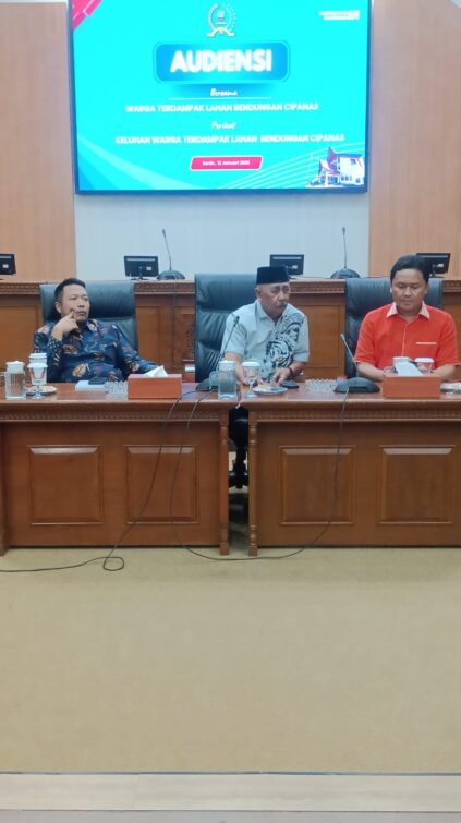 ‎Sumedang | Metronasionalnews.com –  Harapan panjang warga terdampak pembangunan Bendungan Cipanas kembali menguat. Pimpinan DPRD Kabupaten Sumedang bersama Komisi I secara resmi menerima aspirasi masyarakat terkait penyelesaian pembayaran lahan pada Senin, 12 Januari 2026. Pertemuan tersebut berlangsung di Ruang Rapat Paripurna DPRD Kabupaten Sumedang dan dihadiri sejumlah unsur pemerintah dan aparat penegak hukum.