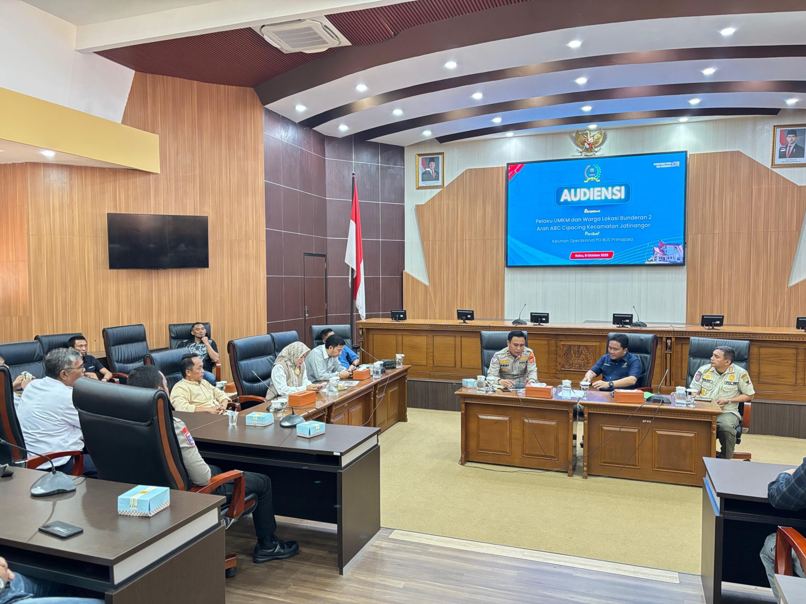Sumedang | Metronasionalnews.com – Komisi I dan IV DPRD Kabupaten Sumedang menerima audensi dari pelaku UMKM dan warga lokasi bundaran 2 arah ABC Cipacing Kecamatan Jatinangor prihal keluhan oprasional PO Bus Primajasa pada Rabu 8 Oktober 2025 di Ruang Rapat Paripurna DPRD Kabupaten Sumedang.