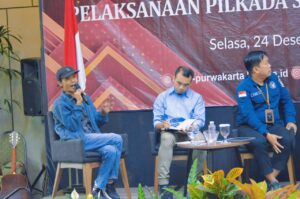 Sementara itu, pada sesi diskusi, KPU menghadirkan empat narasumber. Keempatnya adalah Divisi Sosialisasi dan SDM KPU Purwakarta Oyang Este Binos dan Plt. Kepala Badan Kesbangpol Yus Djunaedi Rusli.