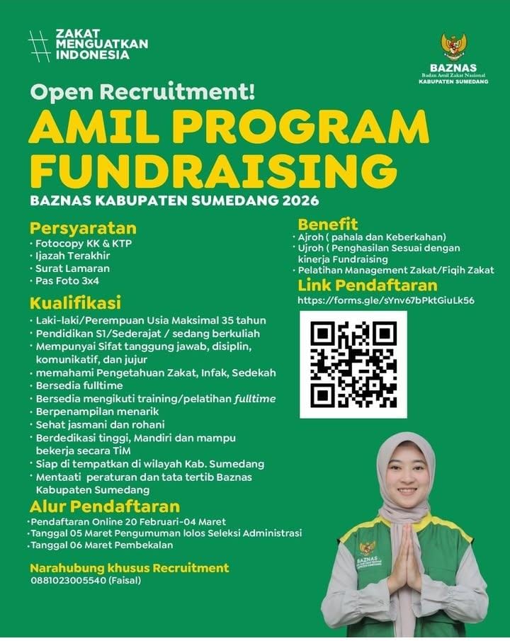 Membuka Jalan Kebaikan: BAZNAS Sumedang Buka Rekrutmen Amil Fundraising 2026
