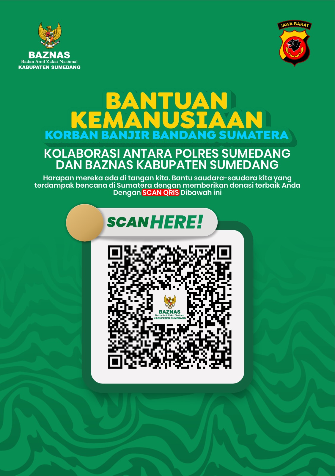 Peduli Korban Banjir Sumatera, Polres Sumedang Fasilitasi Donasi QRIS melalui BAZNAS