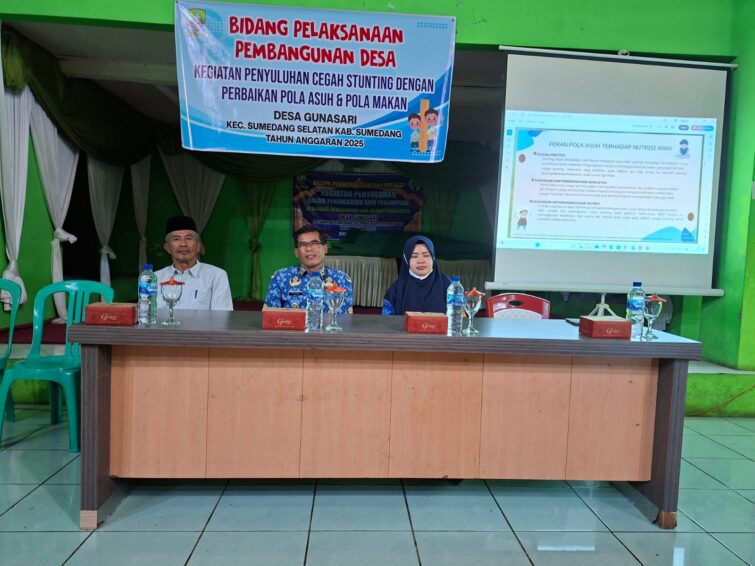 Sumedang |Metronasionalnews.com – Gedung Olaraga (GOR) Desa Gunasari, Kecamatan Sumedang Selatan, Rabu (17/9/2025), menjadi ruang temu gagasan untuk masa depan anak bangsa. Pemerintah desa bersama unsur kecamatan dan tenaga kesehatan menggelar Penyuluhan Cegah Stunting dengan fokus pada perbaikan pola asuh dan pola makan.