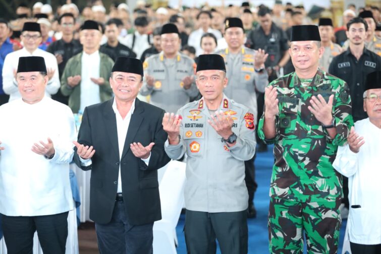 Sumedang | Metronasionalnews.com – Suasana Hidmat menyelimuti Polda Jabar pada Minggu (7/9/2025) saat TNI, Polri, Forkopimda dan para tokoh agama, tokoh masyarakat, serta ojeg online juga elemen masyarakat berdoa bersama untuk negeri dalam rangka memperingati Maulid Nabi Besar Muhammad SAW 1447 H