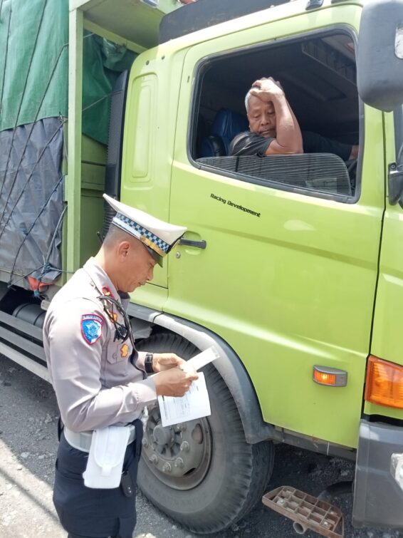 Dalam pelaksanaannya, petugas melakukan pemeriksaan dan memberikan himbauan kepada kendaraan angkutan barang yang melanggar ketentuan pembatasan operasional selama periode angkutan Lebaran.