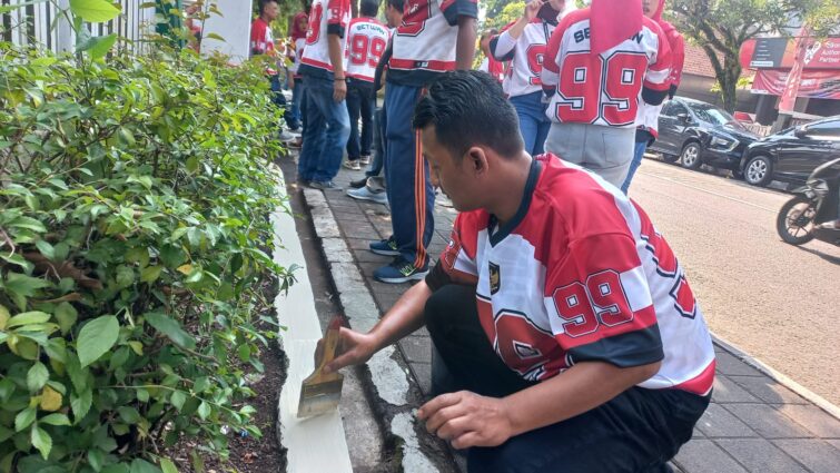 Setwan Sumedang Gotong Royong Percantik Kota Lewat Pengecatan Blumbak Jalan Protokol