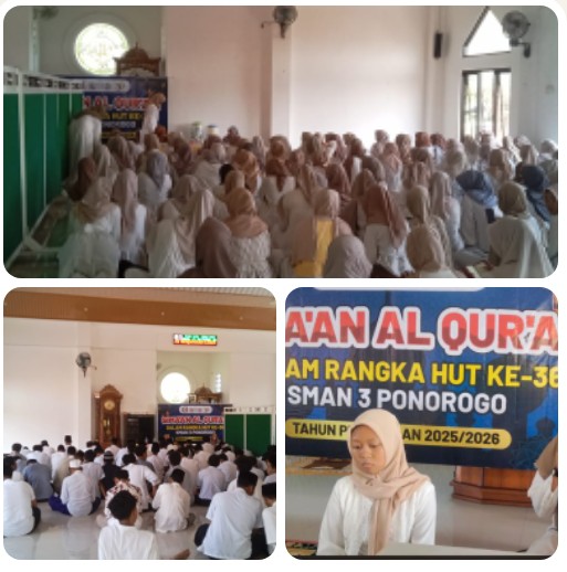 Bagi warga SMAN 3 Ponorogo, ulang tahun kali ini bukan hanya pesta tiga hari, melainkan wujud nyata perjalanan panjang sekolah dalam membentuk generasi muda yang beriman, berkarakter, dan penuh semangat kebersamaan.(SGTA)