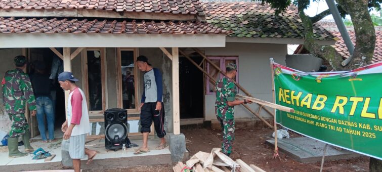 Sumedang | Metronasionalnews.com – Semangat pengabdian dan kepedulian sosial kembali diwujudkan oleh Tentara Nasional Indonesia Angkatan Darat (TNI AD) melalui Kodim 0610/Sumedang. Dalam rangka memperingati Hari Juang Kartika ke-80 Tahun 2025, Kodim 0610/Sumedang bersinergi dengan BAZNAS Kabupaten Sumedang melaksanakan Karya Bakti Rehabilitasi Rumah Tidak Layak Huni (RTLH) sebanyak 11 unit yang tersebar di berbagai wilayah Kabupaten Sumedang.