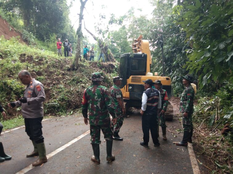 TNI, Polri, dan Warga Gotong Royong Bersihkan Material Longsor di Jalan Raya Sumedang–Subang
