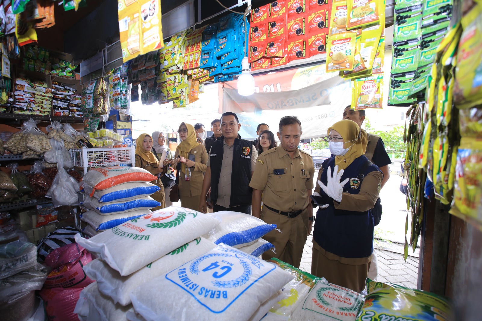 Bulog Madiun sosialisasi ketersediaan beras dan Minyak Kita, sambil Satgas Pangan Polres Madiun cek perizinan toko dan kios. “Kami akan terus monitoring harga dan imbau pedagang jual sesuai HET,” tegas AKP Agus.